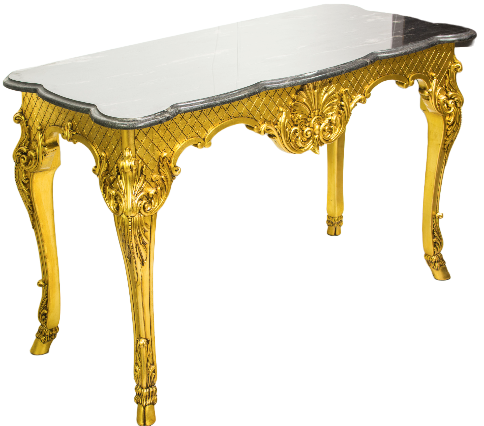 Blat din granit lustruit, mobilier din lemn masiv sculptat.