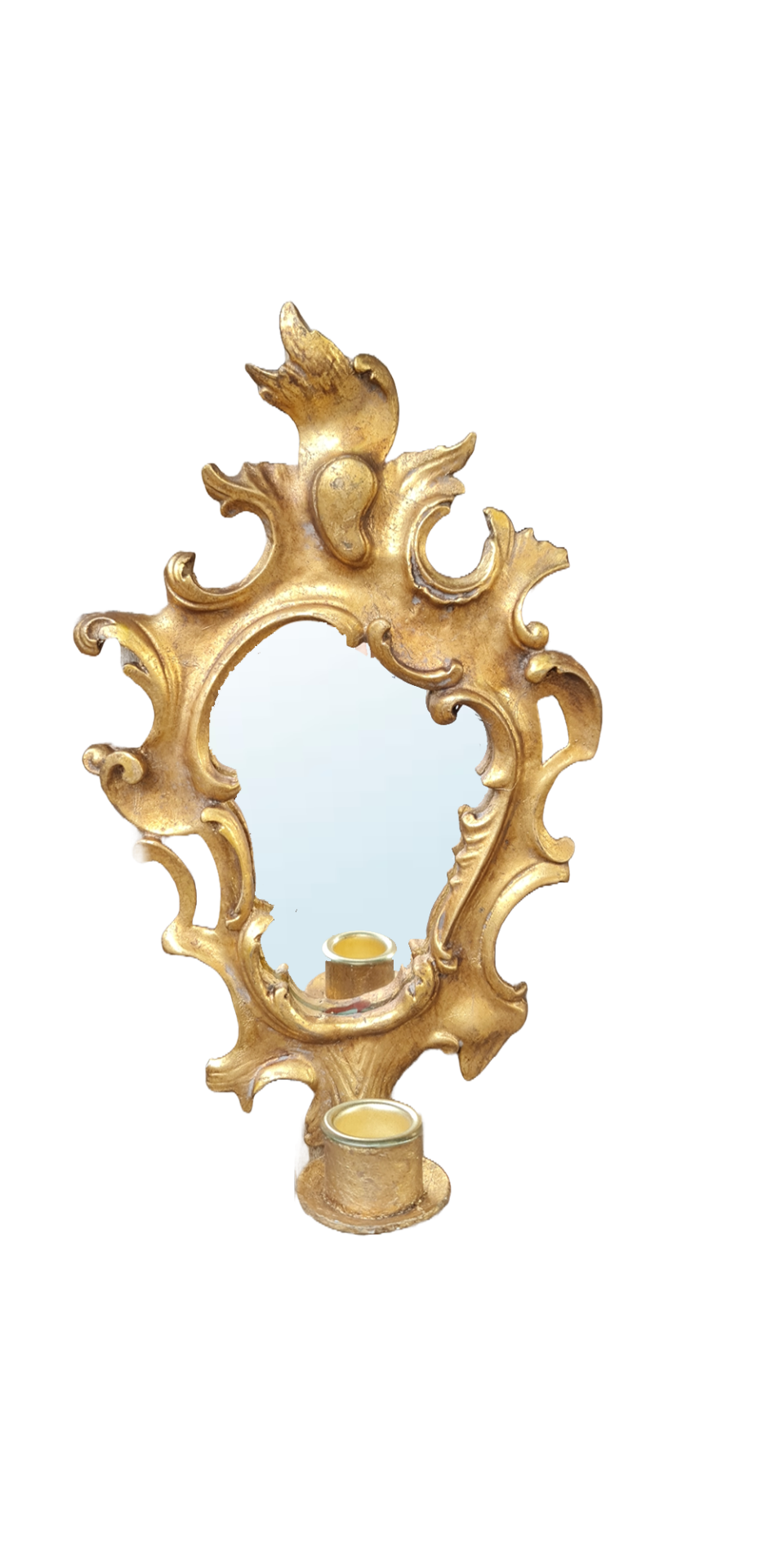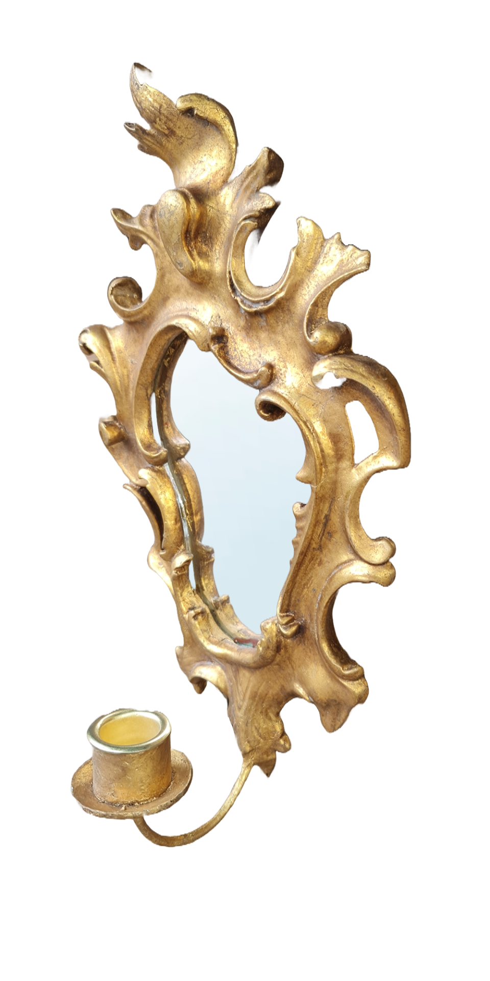 Oglindă din lemn Rococo secol XVIII-XIX cu suport bronz pentru lumânare