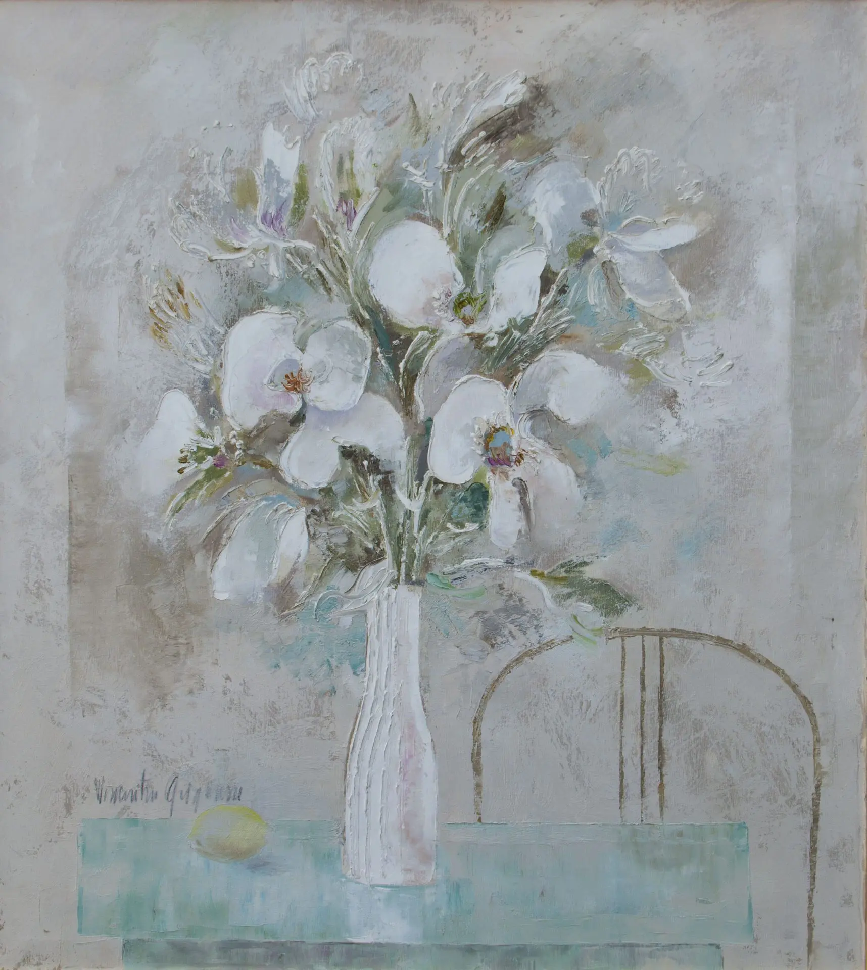 Pictor: Vas cu flori în terasă – Vincențiu Grigorescu